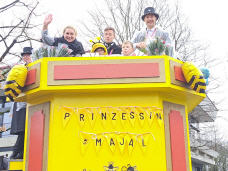 „Maja tanzt, die Bienchen fliegen, es wird gefeiert, bis das sich die Blömchen biegen!“ Klar, dass wenn man Prinzessin Maja heißt, man als Bienenkönigin auftritt. Und so regierte Maja I. (Wersuhn) als Träumchen in Schwarz-Gelb mit dem sie umschwirrenden „Bienenvolk“ den Karneval in Roisdorf.