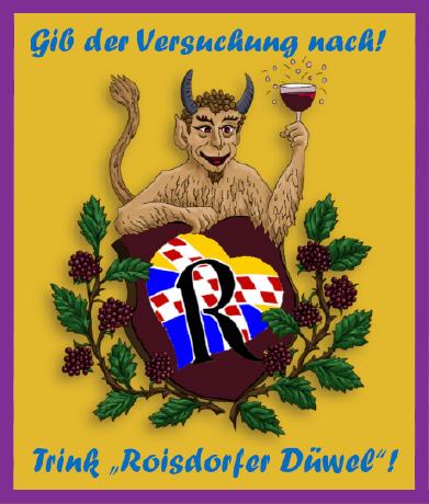 Der Roisdorfer Karnevalszug an Wieverfastelovend, dem 12. Februar, wird diesmal von der Gruppe der Heimatfreunde angeführt. Unser Motto ist der "Roisdorfer Düwel", eine Mischung aus dem traditionellen Alfter/Roisdorfer Rebellenblut und trockenem Sekt. die wir in jedem Jahr an unserem Stand zur Großkirmes ausschenken: Teuflisch gut!