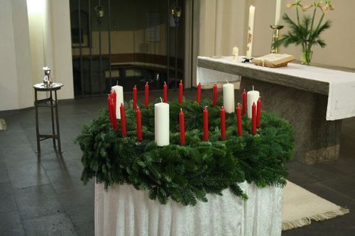Einen Adventskranz aufzustellen oder aufzuhängen, ist wohl in fast jeder katholischen oder evangelischen Kirche in Deutschland üblich. Der Adventskranz in der Roisdorfer Pfarrkirche St. Sebastian stellt jedoch etwas ganz besonderes dar - obwohl er sich in seiner Form kaum von anderen Adventskränzen unterscheiden dürfte.