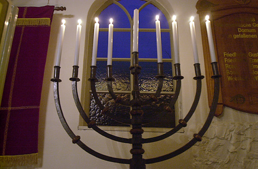 „Memoria“ und auch „Mysterium“ der Adventszeit sind bei diesen Deutungen angesprochen. Wie sieht es aber mit dem Aspekt der „Prophetia“, der Voraussage, dem Hinweis auf die Vollendung aus? Er fehlt in den gängigen Erklärungen, doch liegt er eigentlich auf der Hand: Man kann dabei auf eine Entwicklungslinie verwiesen, die weit vor diese Zeit des Pastors Wichern zurückführt, nämlich auf die mittelalterlichen Radleuchter des 11. und 12. Jahrhunderts.