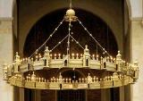 Alle diese in der Form eines Speichenrades von der Decke hängenden, monumentalen Kerzenleuchter – aus vergoldetem Kupfer gefertigt mit einem Durchmesser von bis zu 6 Metern – sind als Mauerkranz mit zwölf oder 24 Türmen und Toren gestaltet - nur der Aachener hat aus Rücksicht auf die Achteckform der Kirche 16 Türme.