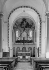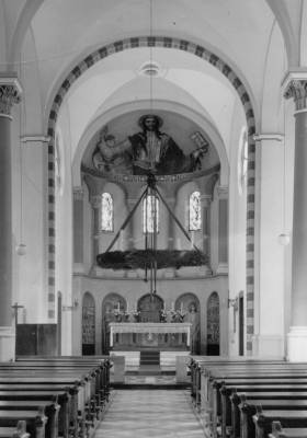 Bedenkt man dies, so erscheint der Roisdorfer Adventskranz in ganz neuem Licht. Der mächtige Kranz mit 2 ½ Metern Durchmesser wurde spätestens von Pastor Matthias Ossenbrink in der Mitte der 1950er Jahre im Chorbereich noch der alten Pfarrkirche aufgehängt – wann genau dies geschah, ist nicht mehr bekannt. Form, Ausmaße und Positionierung im Chor nehmen jedenfalls die der mittelalterlichen Radleuchter auf und machen damit deutlich, dass auch hier die Vision des „Himmlischen Jerusalem“ vor Augen geführt wird.