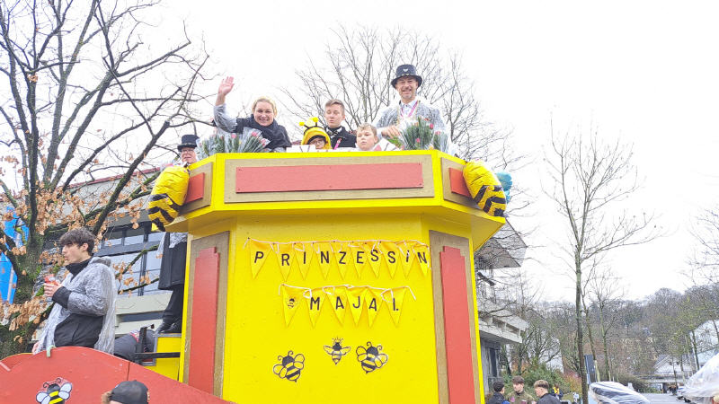 „Maja tanzt, die Bienchen fliegen, es wird gefeiert, bis das sich die Blömchen biegen!“ Klar, dass wenn man Prinzessin Maja heißt, man als Bienenkönigin auftritt. Und so regierte Maja I. (Wersuhn) als Träumchen in Schwarz-Gelb mit dem sie umschwirrenden „Bienenvolk“ den Karneval in Roisdorf.