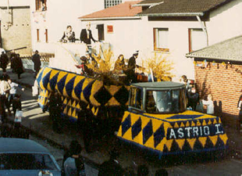 Astrid I. (Schmidt, später Hennes), zog bei strahlendem Sonnenschein auf ihrem Prunkwagen durch das Dorf.