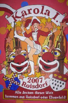 Aus Anlass des 75-jährigen Bestehens des TuS Roisdorf repräsentiert unseren Heimatort Claudia I. (Hänel), aus Mühlheim a.d. Ruhr gebürtige, aber seit Jahren fest in Roisdorf und seinem Karnevalsgeschehen integrierte Rechtsanwältin: "Zesamme spelle, jewenne on verliere - et Schönste ös, zesamme ze fiere!"