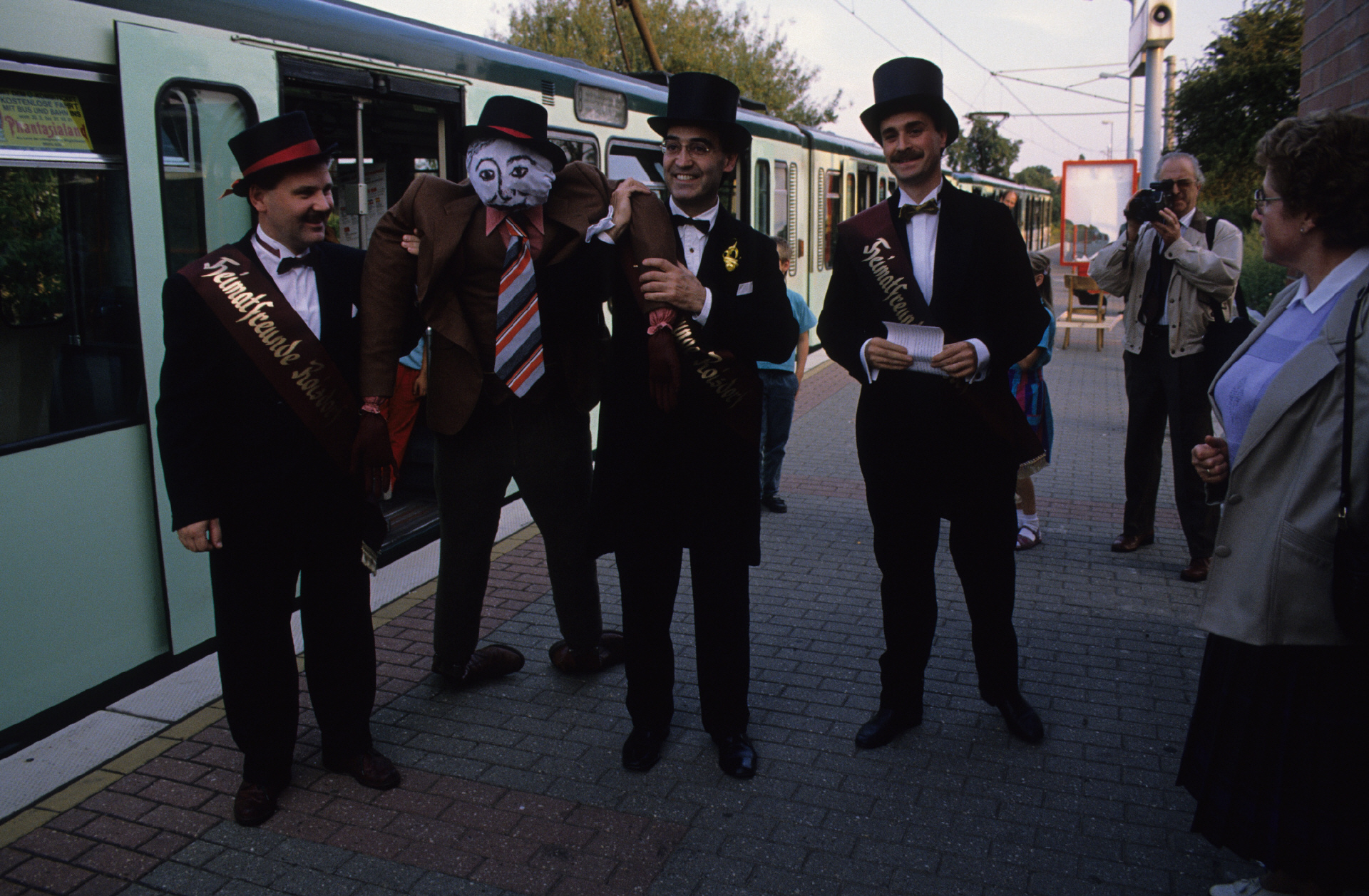 Der Paias wird 1991 von den Heimatfreunden mit der Vorgebirgsbahn aus Alfter, wo er in der Woche zuvor die Kirmes regiert hat, abgeholt.