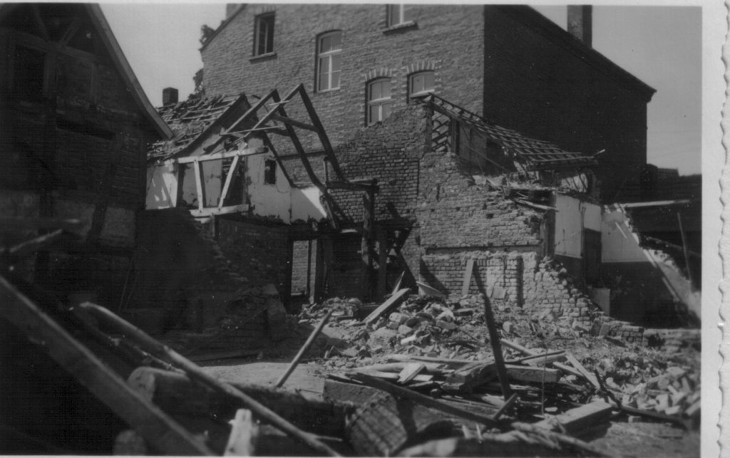 Nun vollzog sich Tag und Nacht der Durchmarsch der amerikanischen Truppen hauptsächlich über Burg- und Brunnenstrasse, weil die Strassenkreuzung Bonnerstrasse-Herselerstr. unter Beschuss der deutschen Flak, die von Hersel her schoss, lag. Durch diese Beschießung wurden vor allem Herselerstr. und Siegesstrasse in Mitleidenschaft gezogen.
