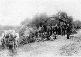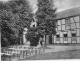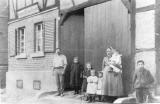 Präsentiert sich heutzutage eine Bäckerei mit großen Schaufenstern voller zum Kauf einladender Backwaren, so war dies vor ca. 100 Jahren, wie unser Bild zeigt, noch ganz anders. Lediglich ein bescheidenes Schild weist darauf hin, dass sich in dem Haus Brunnenstraße 30, das man ansonsten auch für ein vergleichsweise stattliches Bauernhaus hätte halten können – es steht heute leider nicht mehr –, die Bäckerei von Wilhelm Schmidt verbarg. Charakteristisch für die sozialen Verhältnisse der damaligen Zeit erscheint auch die Familie des Bäckers mit seiner Frau und den sechs, offenbar bald darauf sieben Kindern.