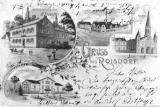 „Lieber Vetter, die herzlichsten Glückwünsche zum Namenstage sendet dir Matthias Schmitt in Roisdorf Poststraße“. Es war um die Wende vom 19. zum 20. Jahrhundert durchaus üblich, den Grußtext auf die Bildseite einer Ansichtskarte zu schreiben, wie es auch hier bei dieser – offenbar von der Restauration von H. Kreuder (heute Ristorante Fratelli) bestellten, beim Bonner Verlag Jos. Bach Ww. ca. 1899 gedruckten – Karte geschah. Recht detailgenau sind hier die Villa von Wittgenstein, der Roisdorfer Mineralbrunnen sowie nebst gerade neuerbautem Pastorat die Pfarrkirche abgebildet, wenn auch der Kirchturm, um auf die Karte zu passen, arg verkleinert dargestellt werden musste. Den ebenfalls auf der Karte gegrüßten Anton Fuhrmann wird es gefreut haben zu erfahren, dass er „seine Schuhe diese Woche“ bekommen werde.