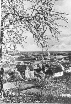 Für die Schönheiten der Baumblüte im Vorgebirge warb in den 1930er Jahren die Roisdorfer Wolfsburg auf einem Faltblatt. Die wasserbewehrte Anlage, die spätestens im 14. Jahrhundert als „Brucher Hof“ gegründet wurde, verdankt ihren Namen nicht, wie die Sage behauptet, blutrünstigen Wölfen, sondern der Familie der Herren Wolff von Bergheimerdorf und Roisdorf, die vom späten 16. bis zum frühen 18. Jahrhundert die Burg innehatte. Vom wehrhaften Hof des Spätmittelalters über den adligen Rittersitz der frühen Neuzeit, den Restaurationsbetrieb und das landwirtschaftliche Gut des 19. und 20. Jahrhunderts, vollzog die Wolfsburg eine lange und wechselvolle Entwicklung bis zum heutigen repräsentativen Wohnsitz der Familie Rech. Ein Schmuckstück für unseren Ort, mit dem sich werben lässt, ist sie dank des Einsatzes vieler aufeinander folgender Generationen immer geblieben.
