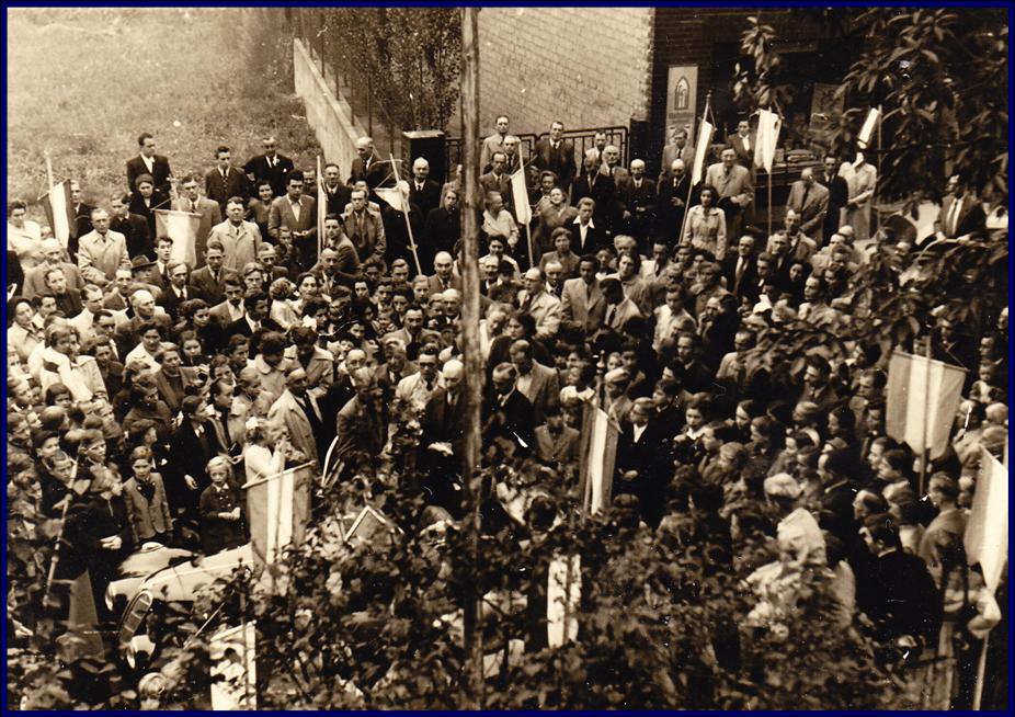 Die Großkirmes des Jahres 1953 hatte einen besonderen, unverhofften Höhepunkt: Wie ein Lauffeuer hatte sich die Nachricht herumgesprochen, dass Heinrich Boos nach Hause kommen sollte, der bereits seit 1943 in russischen Kriegsgefangenenlagern in Sibirien, im Ural und am Schwarzen Meer hatte Zwangsarbeit hatte leisten müssen. Zu seinem ehrenden Empfang stand am Roisdorfer Bahnhof eine große Menschenmenge samt Musikkapelle bereit. Im offenen Wagen chauffierte man ihn zu seiner Wohnung in der Brunnenstraße durch die mit Fähnchen geschmückten Straßen, derweil die Glocken läuteten. Fast erdrückt von der sich mit ihm und seiner Familie freuenden Menschenmenge wirkt auf unserem Bild der hinter seinem mächtigen Blumenstrauß fast verschwindende Heimkehrer, als ein Wagen vor dem haus Rech auf der Bonner Straße anhält. Heinrich Boos sollte einer der letzten aus der Kriegsgefangenschaft nach Roisdorf heimkehrenden Soldaten sein. Auf die Rückkehr oder wenigstens die Todesnachricht von 23 vermissten jungen Männern warteten deren Angehörige letztlich vergebens.