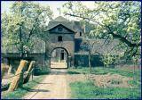 Während man heute die Wolfsburg in aller Regel über den vom Siefenfeldchen auf sie zuführenden Weg betritt, so erfolgte dies in früheren Jahrhunderten, als die Burg noch von Wassergräben umgeben und ebenfalls durch einen Graben in Vorburg und Haupthaus geschieden war selbstverständlich allein durch das Torhaus. Dieses befindet sich am Ende des von der Bonner Straße abgehenden „Burgs Weg“. Die schmucken Formen, in denen sich das Torhaus präsentiert, erhielt es in der Zeit nach 1721, als die Wolfsburg Eigentum der Bornheimer Burgherren von Waldbott-Bassenheim wurde. Über der Durchfahrt lag ein später als Taubenschlag genutzter Wachraum, der im Inneren noch Reste alten Stuckdekors aufweist. Bekrönt wird das Gebäude durch ein seinerzeit modisches Mansardendach, dessen Giebel an den Frontseiten nicht nur zierende, sondern durchaus praktische Funktionen haben: Bei Regen wurde das Wasser des Daches so abgeleitet, dass man das Torhaus trocken betreten und wieder verlassen konnte. Die kunstvolle schmiedeeiserne Wetterfahne auf der Dachspitze zeigt das Allianzwappen der Waldbott-Bassenheim und Wolff-Metternich. Dem verdienstvollen Bornheimer Heimatforscher Norbert Zerlett gelang die stimmungsvolle Aufnahme des Torhauses der zu seiner Zeit noch gänzlich landwirtschaftlich genutzten Wolfsburg.