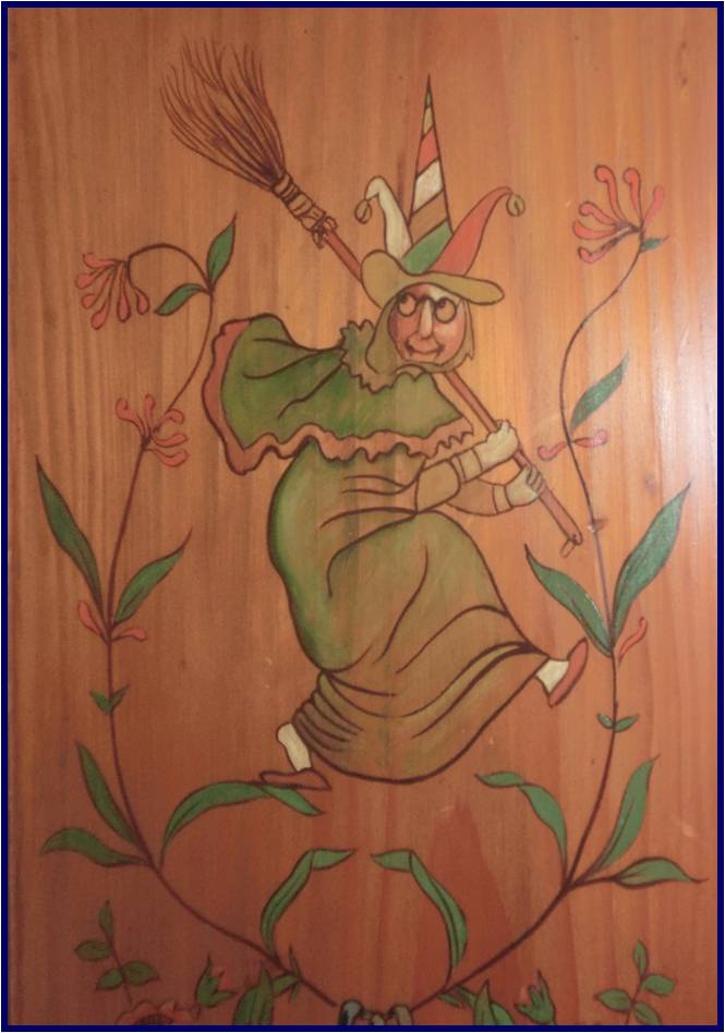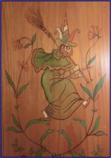 Im Roisdorfer Karneval haben seit jeher die Frauen das Sagen. Hatten die jecken Wiewer des Damenkomitees „Germania“ im Jahre 1938 die Roisdorfer Weiberfastnachtstradition begründet, die ihren Ausdruck bis heute in dem Weiberfastnachtszug mit abschließendem Prunkwagen der jeweils amtierenden einzelnen Karnevalsprinzessin findet, so ist es überaus passend, dass die älteste Karnevalsdarstellung aus Roisdorf ebenfalls ein närrisches Weib zum Thema hat: Sie findet sich in der Holzvertäfelung eines Kabinetts der schlossartigen Villa, die der schwedische Maler und Bauforscher Wilhelm Graf Mörner im Jahre 1872 im Siefenfeldchen fertigstellte. Alle Monate des Jahres sind hier mit karikaturhaften Darstellungen aufgemalt – vom Liebespaar im Wonnemonat Mai bis hin zur Martinsgans im November. Den Monat Februar repräsentiert eine Knusperhexe, die ihren Reisigbesen schultert und ihren Hexenhut zu einer Karnevalskappe erweitert hat. Offenbar gab man hier eine verkleidete alte Möhn wieder, wie man sie vielleicht in Köln – oder gar in Roisdorf? – in der Zeit um 1890 an den Fastnachtstagen durch die Straße tanzen sehen konnte.