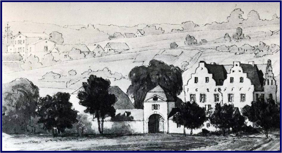 Noch suchte er für sich und seine junge Familie ein passendes Gelände zum Bau einer repräsentativen Villa: der schon beim Februarbild erwähnte Wilhelm Graf Mörner, den es der Kunst und der Liebe wegen an den Rhein gezogen hatte. In Roisdorf fand er das passende Gelände, und zwar in der Nachbarschaft zweier bemerkenswerter Anwesen, der klassizistischen Villa Wittgenstein und der Wolfsburg, einer rheinischen Wasserburg in den Forrnen der Spätrenaissance und des Barock. Beide Ge-bäude vereinigte er in einem – leider nur in einer schwarz-weiß Fotografie überlieferten – Aquarell des Jahres 1867, wohl nicht wissend, dass es sich bei ihnen um ursprünglich als Höhenburg am Hang und als Wasserburg in der Ebene zusammengehörende Anlagen handelte, beide im Besitz der Familie von Metternich. Seine eigene Villa gestaltete er, sich von beiden abhebend, aber doch von nicht geringerer architektonischer Qualität, in der zeitgemäßen historistischen Formen, denen eines Loire-Schlösschens des 17. Jahrhunderts, die sie bis heute, wo sie „Haus Tauwetter“ genannt wird, glücklicherweise im Wesentlichen bewahrt hat.