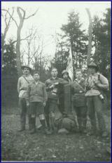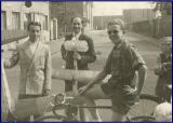 Die Gebrüder Theo, Gerhard und Georg Schaden zeigten Ende der 1920er Jahren bereits ein reges Interesse an der Fliegerei. So gründete man 1930 die „Flugfreunde Roisdorf“, die auf dem Gelände der Lasurfabrik Dederichs – an der Stelle des heutigen Penny-Markts – mit der „Grünen Post“ einen eigenen Schulgleiter konstruierten. Geflogen wurde auf dem Rodderberg bei Rolandseck. Der Zweite Weltkrieg setzte der privaten Fliegerei indes ein Ende, und auch in der Nachkriegszeit blieb sie zunächst verboten. Man versuchte, sich mit dem Bau von Modellflugzeugen den Traum vom Fliegen zu erhalten. Als das Verbot 1951 aufgehoben wurde, waren es wieder Mitglieder der Familie Schaden, die gemeinsam mit anderen Fluginteressierten in der Roisdorfer Matratzenfabrik Rohrscheid den über Jahrzehnte blühenden „Luftsportverein Vorgebirge e.V.“ gründeten. Unser Bild aus dem Folgejahr zeigt Gerhard und Egon Schaden und Hans Reiffert, die, bewundert von den Jungen des Dorfes, vor der Güterbahnhofstraße ihre zum Zweck des Sammelns von Erfahrungen selbstgebastelten Modellflugzeuge präsentieren.