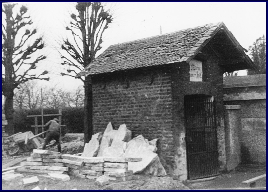 Nur kurz vor dem Abbruch wurde es fotografisch dokumentiert: Das wohl in der ersten Hälfte des 19. Jahrhundert erbaute „Maria-Hilf-Kapellchen“ des Roisdorfer Friedhofs. Die Arbeiten an der neuen Umfassungsmauer des Friedhofs waren bereits voll im Gange, in deren Verlauf das Heiligenhäuschen durch das heutige, wenig westlich gelegene Gebäude ersetzt werden sollte. Der schlichte Backsteinbau dürfte indes bereits einen Vorgänger gehabt haben, der indirekt im Jahre 1689 durch die Erwähnung der „Siegesstraße“ bezeugt ist, einer Straße also, die vom Dorf zu einem dort gelegenen „Sieches“ führte: Zu einem solchen „Sieches“, einem Leprosenhaus, gehörten stets solche Kapellchen, die, an einer vielbegangenen Straße befindlich, einen Opferstock für milde Gaben für die armen Aussätzigen enthielten. Auch beim heutigen liebevoll gepflegten Nachfolger hält mancher Friedhofsbesucher zu einem stillen Gebet zur „Immerwährenden Hilfe“ inne und wirft ein paar Cent in den immer noch vorhandenen Opferstock.