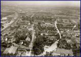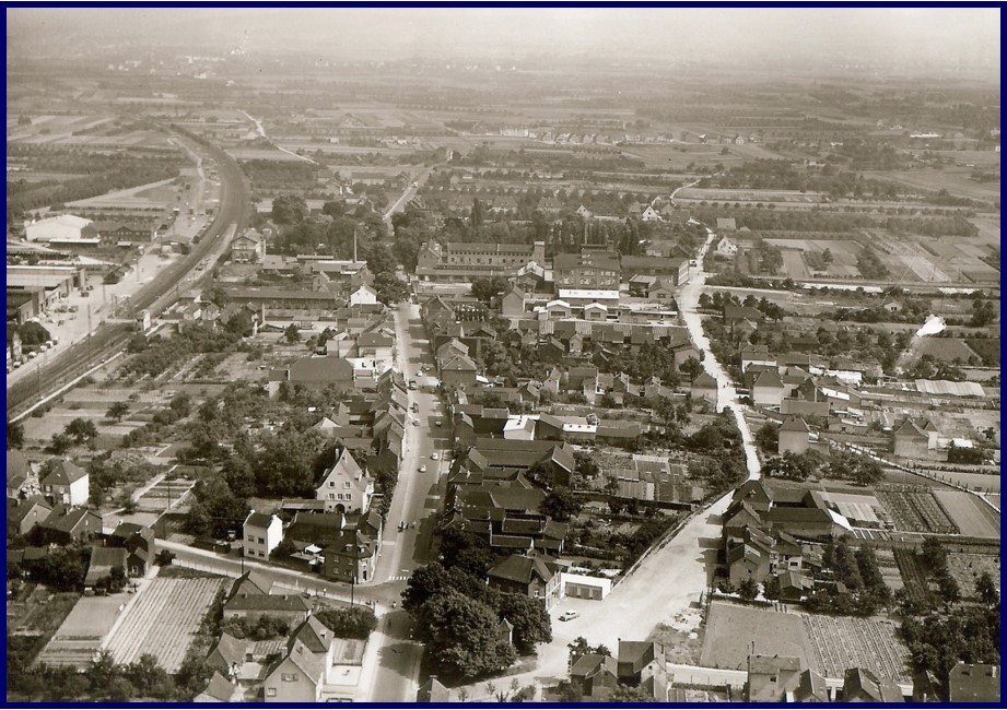 Aus der Vogelperspektive blickt man hier auf den Teil Roisdorfs, der in der Zeit der Aufnahme noch allgemein als „die Bahn“ bekannt war: auf den Bereich der Bundesbahnstrecke und der parallel dazu verlaufenden Bonner- sowie die Friedrichstraße. Letztere erscheint so hell, da sie als ehemalige Trasse des „Feurigen Elias“ noch nicht asphaltiert war. Es ist dies der Teil Roisdorfs, der erst im 19. Jahrhundert nach der Aufnahme des Eisenbahnbetriebs bebaut wurde und im Gegensatz zu anderen Ortsteilen, in denen die Landwirtschaft dominierte, eher gewerblich geprägt war. So erkennt man zwischen dem Bahnhof und der – damals bereits geschlossenen – Fabrik Gammersbach noch die „Sandmühle“, in der vormals der weiße Quarzsand des Vorgebirgshangs verarbeitet worden war. Ein Schwerpunkt von Gewerbe und Handel ist die „Bahn“, auch wenn sie kaum noch so genannt wird, bis heute geblieben.