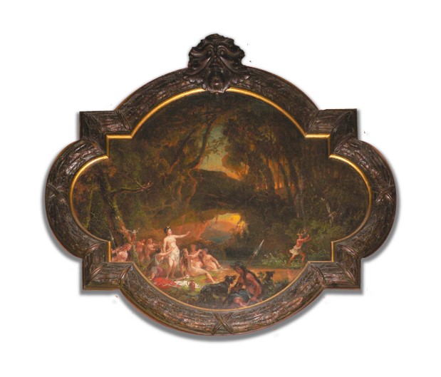 Kein Roisdorfer Motiv, aber ein Bild, das es seit langem in Roisdorf gibt und das kaum jemand kennt: Eine üppige mythologische Szene, die in Haus Tauwetter (ursprünglich Haus Mörner, später Haus Wrede) im Siefenfeldchen zu sehen ist. Es zeigt die griechisch/römische Göttin Artemis/Diana, die sich mit ihren Gefährtinnen in einer Quelle im Wald nach erfolgreicher Jagd badet – sie war ja die Göttin der Jagd – und dabei von dem gleichfalls dort jagenden Aktaion lüstern ausgespäht wird, ein Frevel, den der Königssohn mit der Verwandlung in einen Hirschen und dem Zerfleischtwerden durch seine eigenen Hunde büßen muss. Wilhelm Graf Mörner (1831-1911), der schwedische Maler und Bauforscher, schmückte mit dem in die Vertäfelung der Wand eingelassenen Bild das Herren- oder Speisezimmer der von ihm erbauten Roisdorfer Villa, und er gab damit seiner Leidenschaft für die Jagd Ausdruck. Ob er es selbst malte oder es sich um ein Werk etwa seines Malerfreundes August von Wille handelt, von dem es ein Gemälde mit gleichem Thema und in ähnlicher Malweise gibt, ist nicht zu entscheiden.