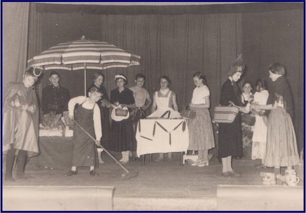 Zu Weihnachten 1959 bot die 7./8. Schulklasse der Volksschule Roisdorf etwas ganz Besonderes: Die Aufführung des Grimm‘schen Märchens „König Drosselbart“ im damaligen Saal der Gastwirtschaft Badenheuer beim Brunnen. Die Kinder hatten bereits sechs Jahre zuvor dort in der ersten Klasse das Märchen „Hänsel und Gretel“ aufgeführt. Besonders in Erinnerung blieb die hier dargestellte Marktszene, nicht zuletzt deswegen, weil die Marktanbieter Roisdorfer Platt sprechen durften, was ansonsten in der Schule ja nicht gerne gesehen wurde. Den König Drosselbart verkörperte Karl-Heinz Lammerich, mit dabei waren Hans-Georg Klein (in der Rolle des Dorfpolizisten), sowie Margret Landsberg, Annemie Medvet, Irmgard Wilhelm, Helga Westenweller, Maria Schmidt, Marlene Hack, Klara Tönnessen, Martha Alef und Sibille Ackermann, ferner Wolfgang Schaden, Johannes Wirtz, Heinz Kraus und Willi Frings. Ein herzlicher Applaus des Publikums war den jungen Darstellern sicher.