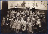 Auf Initiative von Pfarrer Ignaz Goertz erwarb im Jahre 1924 die Kath. Kirchengemeinde Roisdorf für 35.000 Goldmark das Anwesen der Gastwirtschaft Wirtz in der Siegesstraße für eine Schwesternniederlassung. Drei Jahre später konnten Ordensschwestern von der Genossenschaft der Töchter des Göttlichen Heilandes in Wien dafür gewonnen werden, das sog. „Wohlfahrtshaus“ zu übernehmen. Feierlich wurde das St. Josefheim am 10. Oktober 1927 eingeweiht. Erste Oberin war Fidelis Oerter, die von ihren Mitschwestern Irmina Oswald bei der häuslichen Krankenpflege, Theresina Finster in der Nähschule und Venerabilis Spies im Kindergarten unterstützt wurde. In der Folge wurde es, wie ein alter Zeitungsbericht vermerkt, für die hart arbeitende Bauersfrau oder die kinderreiche Mutter selbstverständlich, zu ihren Kindern zu sagen: „Ich hann hück esu vell Arbeet, jank in de Kinderjaade bei de Schwestere.“ Unser Bild zeigt die von den Schwestern behüteten braven Dorfkinder, die im liebevoll kindgerecht ausgemalten und hergerichteten ehemaligen Tanzsaal der Gastwirtschaft etwas erstaunt den Fotografen anblicken.