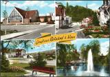 Ansichtskarten sind heute, da man WhatsApp, Instagram oder Ähnliches benutzt, um Bildergrüße aus Orten, die man besucht oder an denen man lebt, zu versenden, ja eine aussterbende Spezies. Vor 50 Jahren war das noch anders. Auf unserer Karte findet man neben der eben erst fertiggestellten, modern gestalteten Pfarrkirche St. Sebastian einen Blick das Ehrental hinunter auf den Oberdorfer Weg zu mit ihrer ebenfalls moderner Wohnbebauung, einen Blick von der kleinen Grünanlage auf dem sog. „Dreieck“ auf die Einmündung der Friedrichstraße, noch ohne das spätere Sparkassengebäude, sowie natürlich den Blick auf den zu allen Zeiten als Ansichtskartenmotiv beliebten Brunnenpark. Dort, wo es nicht genug bunte Blümchen gab, wurden diese nachträglich in die Fotos hineingetupft. Schöne, oder durchaus auch geschönte, „gephotoshoppte“ Bilder dieser Art werden indes auch heute gerne verschickt.
