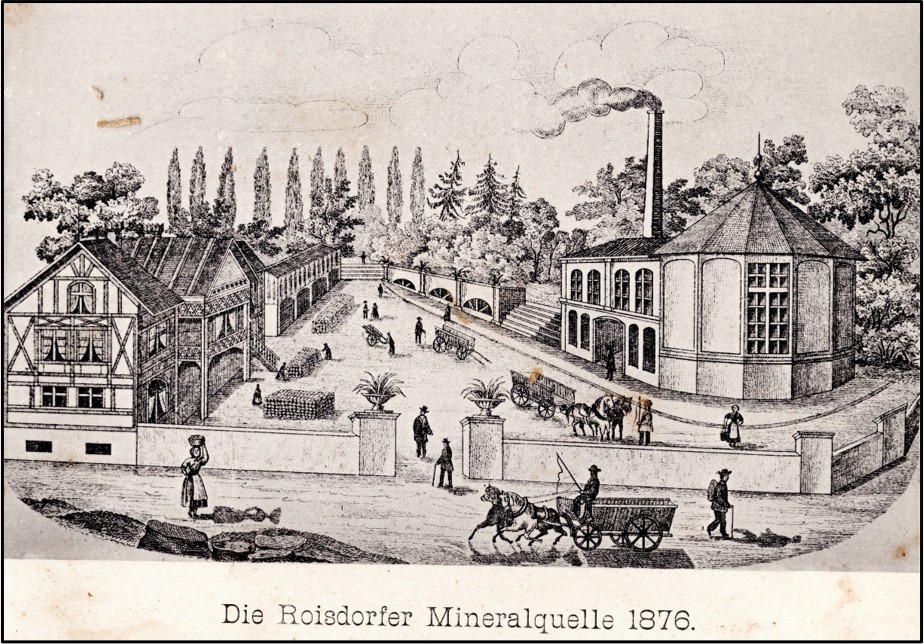 Mit der Übernahme durch den neuen Pächter, den Kölner Apotheker Wilhelm Custor, begann im Jahre 1876 ein ganz neues Kapitel der langen Geschichte des Roisdorfer Mineralbrunnens: Man gab sämtliche, nicht mehr lukrative Kurort-Aktivitäten auf. Das wissenschaftliche Gutachten eines Dr. Freytag hierzu war versehen mit drei Stahlstichen, auf denen der Roisdorfer Brunnen abgebildet war. Entscheidender Unterschied zu früheren Abbildungen: Es erhebt sich nun über der Brunnenstube an der Stelle des luftigen Holztempels ein zentralgestaltiger, geschlossener Bau, dem ein weiteres, doppelstöckiges Gebäude mit Schornstein angegliedert ist – Hinweis auf die mechanisierte und von einer Dampfmaschine betriebene Abfüllung des Mineralwassers. Repräsentativ das Ganze, innovativ und zukunftsweisend, aber eben insgesamt weit eher eine Industrie- als eine Kurortanlage.