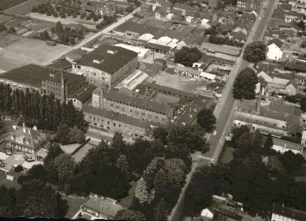 Lederwarenfabrik Gammersbach und ehemalige Sandmühle Schumann (rechts im Bild mit Schornstein), 1950er Jahre