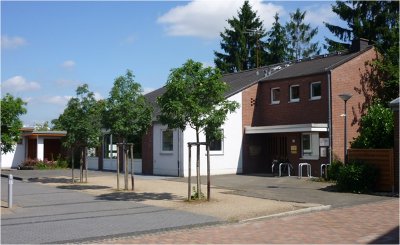 Die Besucher des Roisdorfer Pfarrheims kennen sicherlich das Gemälde, das an der südlichen Stirnwand des Pfarrsaales hängt. Es zeigt auf blau-grünem Grund das ganzfigurige Bildnis einer stehenden Frau, die das von einem goldenen Nimbus umfasste Haupt leicht nach rechts gewendet hat. Sie ist bekleidet mit einem braunen, mit einem groben Strick gegürteten Gewand, über das ein blassgrüner Umhang fällt. Ein blauer, weißgefütterter Schleier bedeckt Haupt und Schultern. In der rechten Hand hält sie mit edler Geste eine sechsblütige weiße Lilie. Wie das einfache Ordensgewand, die auf die Jungfräulichkeit der Dargestellten hinweisende Lilie und der Heiligenschein zusammen mit der Inschrift am unteren Rand erkennen lassen, handelt es sich um ein Bild der hl. Clara, der Begründerin des Klarissenordens.