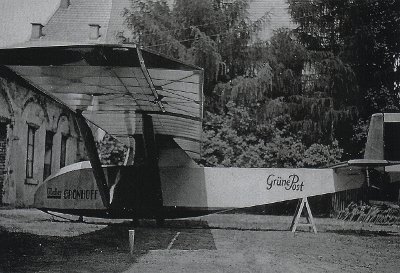 Bereits 1932 bot sich die Möglichkeit, ein flugtechnisch verbessertes Segelflugzeug zu erhalten. Durch die Berliner Tageszeitung die „Grüne Post" aus dem Ullstein Verlag (erschien überregional und war Deutschlands erstes Wochenblatt), wurden Baupläne zum Selbstbau eines Segelflugzeuges anboten. Dieser Flugzeugtyp, benannt nach der Zeitung „Grüne Post" gehörte schon zu den verbesserten Schulgleitern. Der Eigenbau erfolgte in den Jahren 1933-35 in Bornheim-Roisdorf in der Lasurfabrik Dederichs (Bonner Straße am Bahnhof Roisdorf). War dann der Schriftzug „Grüne Post" auf das Segelflugzeug gemalt, bekam man vom Ullstein Verlag eine Prämie für den flugtüchtigen Bau. Die Fertigstellung des Schulgleiters „Zögling" sowie der „Grünen Post" stellte die Gruppe allerdings vor finanzielle Probleme. Zur Sammlung von Spenden fand am 06. August 1933 im Saal von Josef Schlösser in Roisdorf eine Ausstellung des Rohbaus der „Grünen Post" sowie Segelflugmodellen statt. Der Reinerlös betrug 28,35 RM. Zuvor wurden durch den Freiherr von Diergardt 50,00 RM gespendet. Für die Qualität des Rohbaus (aus Holz) erhielten die Roisdorfer eine offizelle Belobigung.