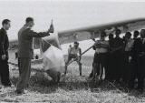 Der Segelfluggleiter "Grüne Post" der Segelfluggruppe Roisdorf, Neusser Straße/ Ecke Friedrichsstraße (vor dem Elternhaus der Gebrüder Schaden)