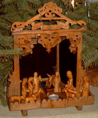 Besonders schön sind die beiden anbetenden Engel gelungen, die in ihrer ungekünstelten Einfachheit wie kleine Geschwister des berühmten schwebenden Engels von Ernst Barlach wirken. Die hl. Familie und die Hirten nehmen den Platz, den die Krippe bietet, vollständig ein. So müssen die Hirten weichen, wenn die hl. Dreikönige, Kamel und Elefanten mit führend, dem Kind ihre Geschenke darbieten sollen.. Von den Dreikönigen fehlt ebenfalls einer, doch ist dieser leicht durch einen der Hirten zu ersetzen.